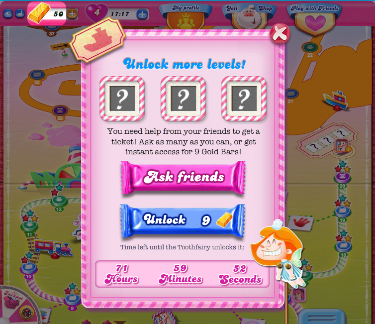 You need help of three friends or $1 to unlock next 15 new levels of episode.